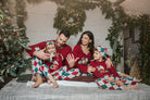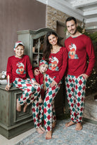 Dizajn: Tamno crveni (bordo) gornji deo sa prazničnim motivom i karirane pantalone donose prazničnu čaroliju uz moderan i razigran izgled.