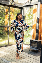 Haljina koju oblačiš u jednom potezu, a izgleda kao da si se spremala satima. Mekana pamučna tkanina prati liniju tijela, dok grafički print i pojas u struku daju „waist–snatched“ efekat bez stezanja.