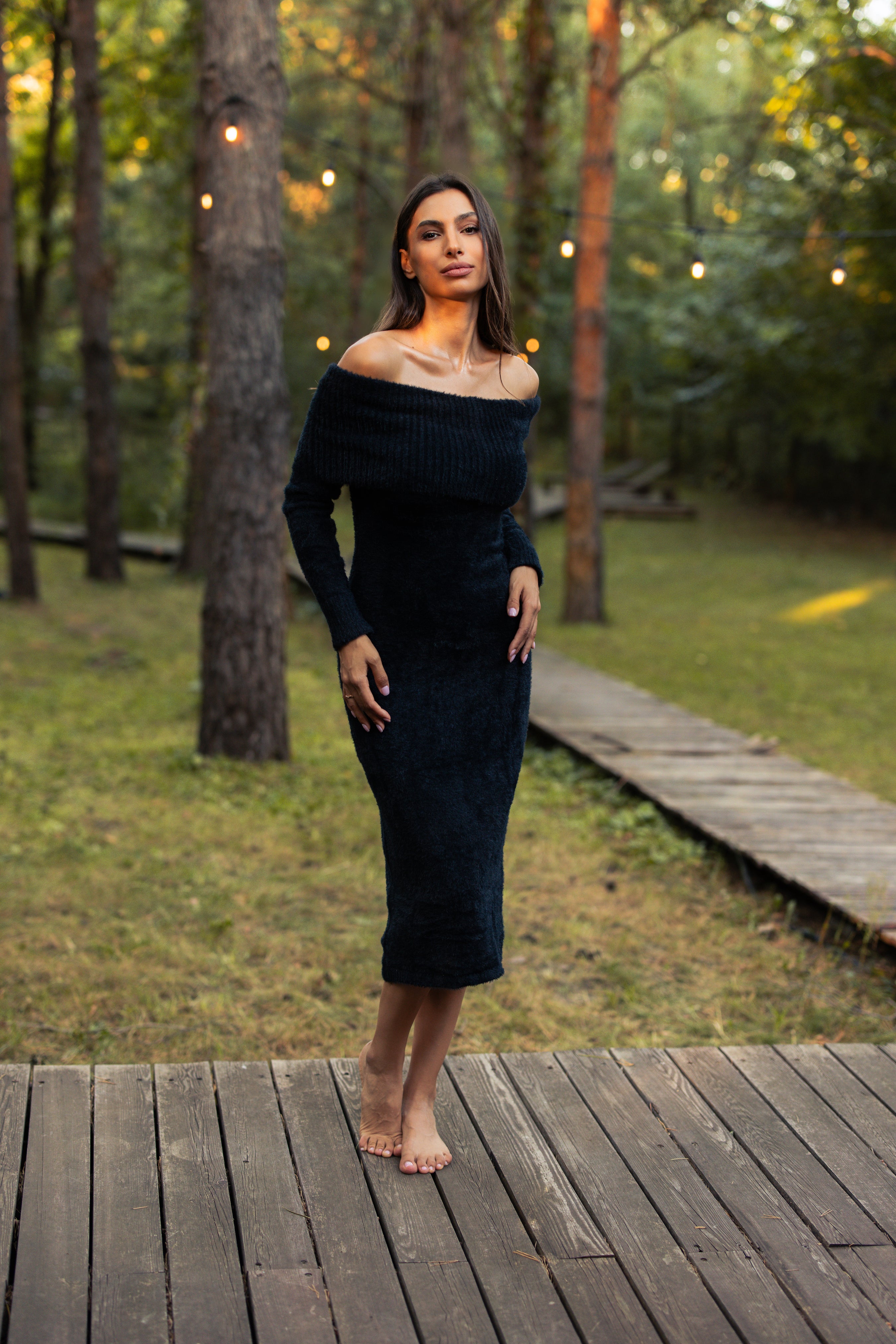 Stil: može se nositi samostalno kao efektna haljina ili u kombinaciji sa dugim kaputom i čizmama za potpun zimski outfit