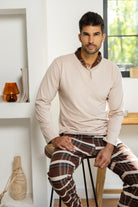 Elegancija: spoj neutralnih boja i diskretnih detalja čini da pidžama izgleda moderno i stilizovano, a ne samo funkcionalno.
