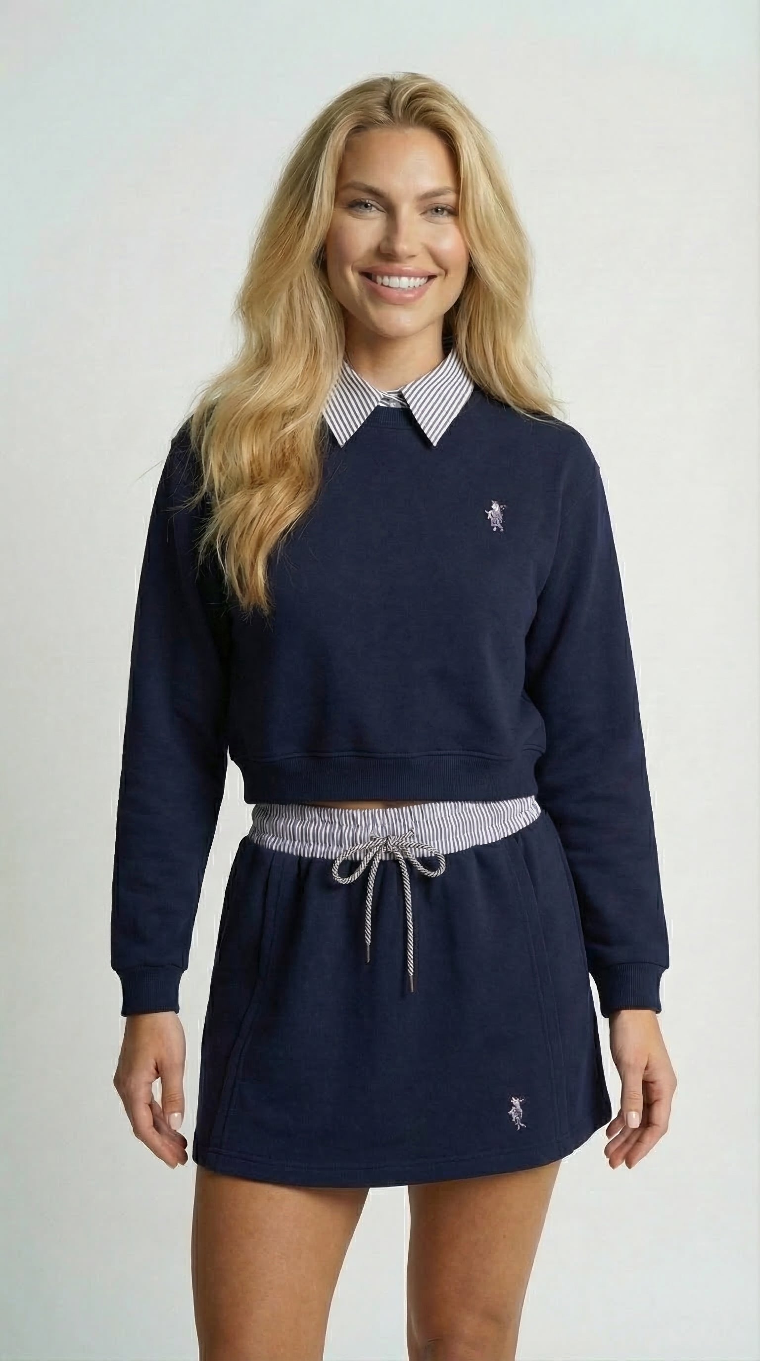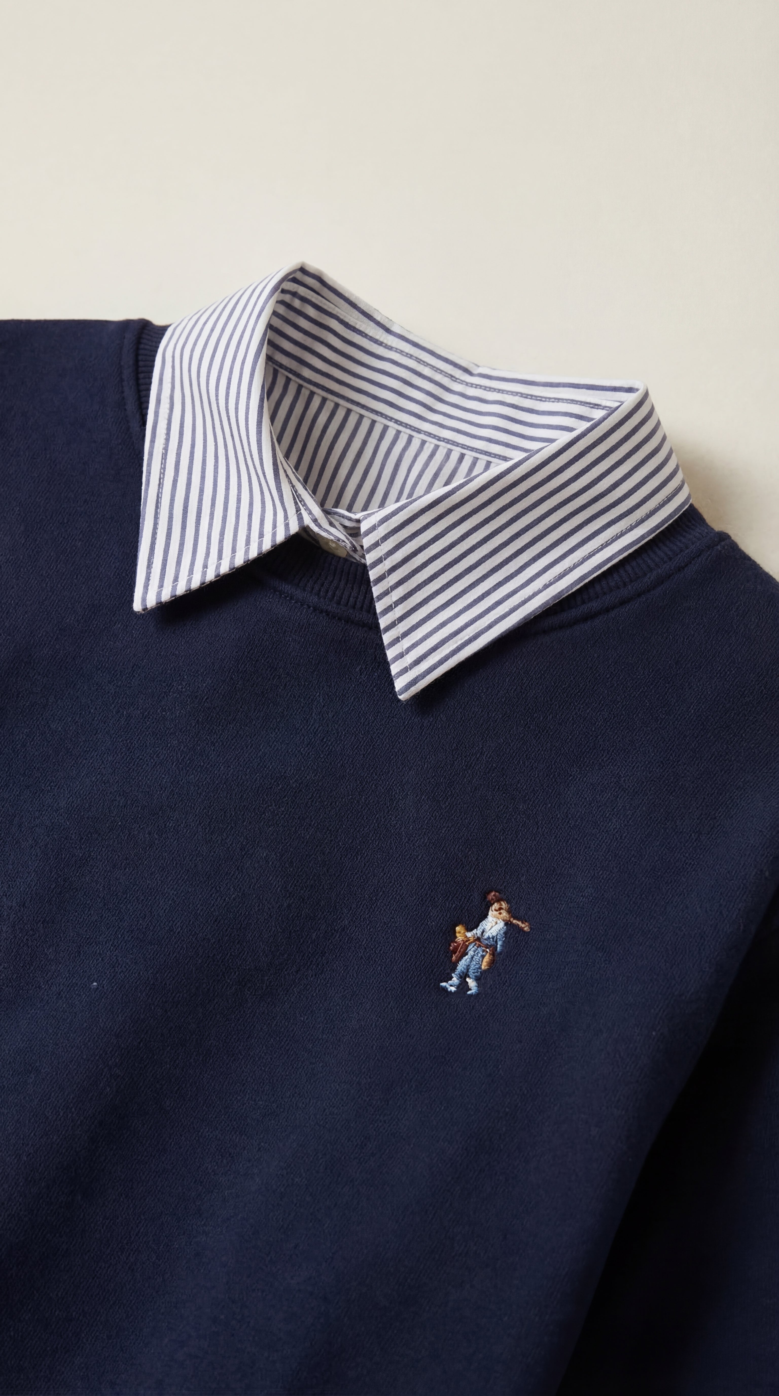 Ušivena kragna i donji prugasti deo daju efekat košulje ispod duksa, za sređen izgled bez truda. -