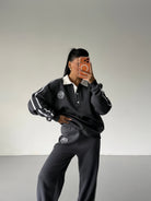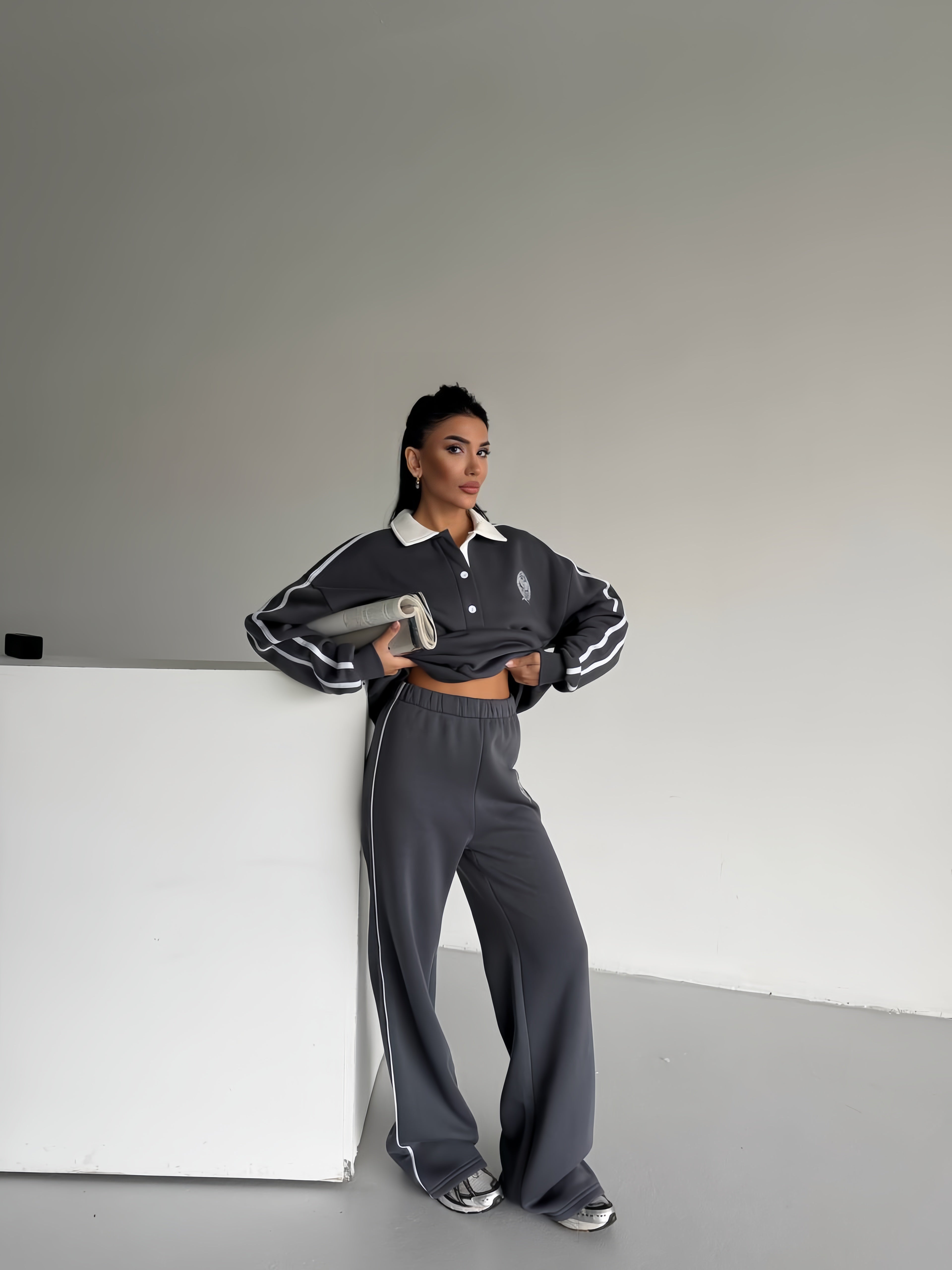 Kontrastna kragna i linije na rukavima i nogavicama daju modernu i elegantnu estetiku. - Široke nogavice za lako kretanje