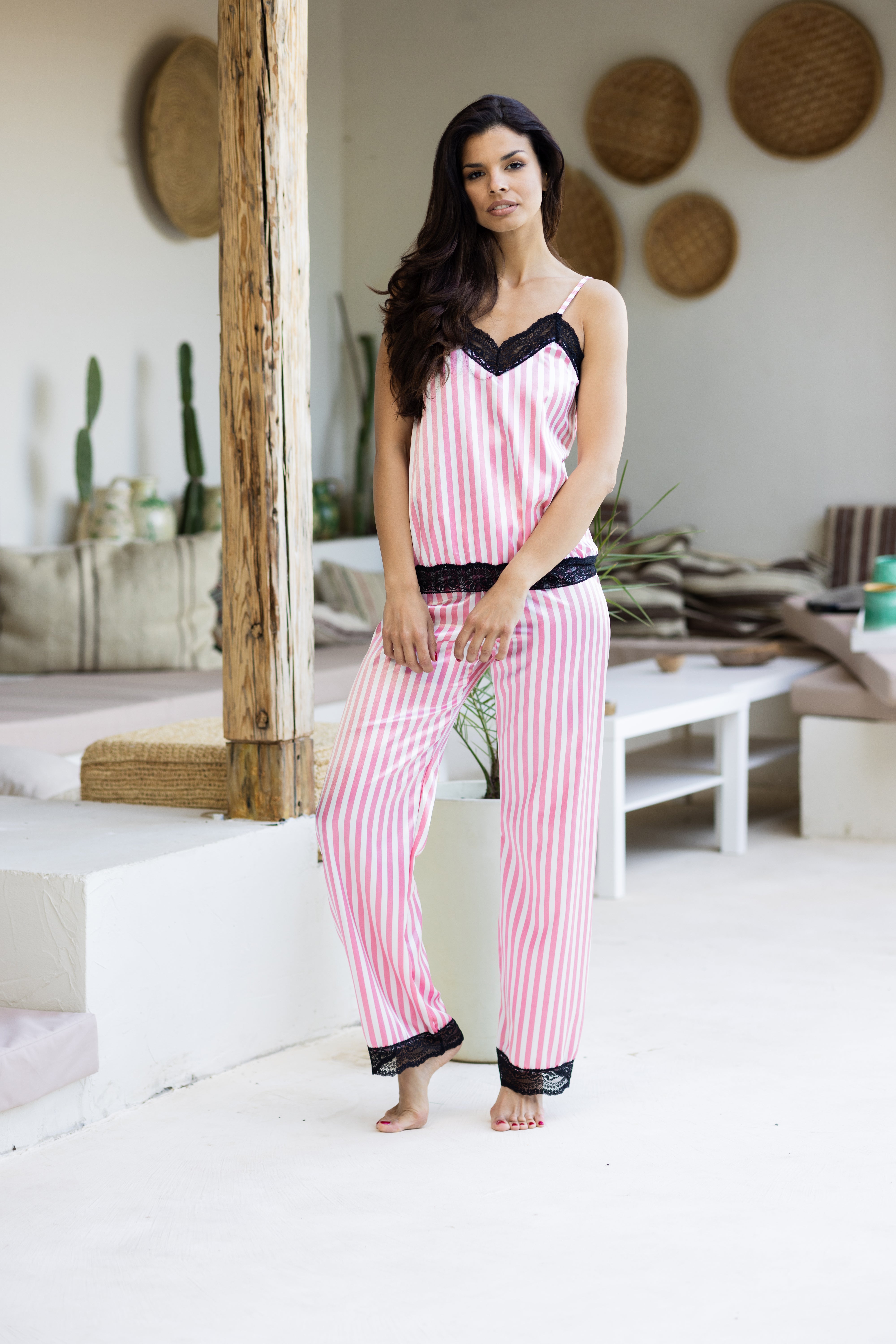 Elegantan i luksuzan zbog savršenog kontrasta roze-belog satena i crne čipke.