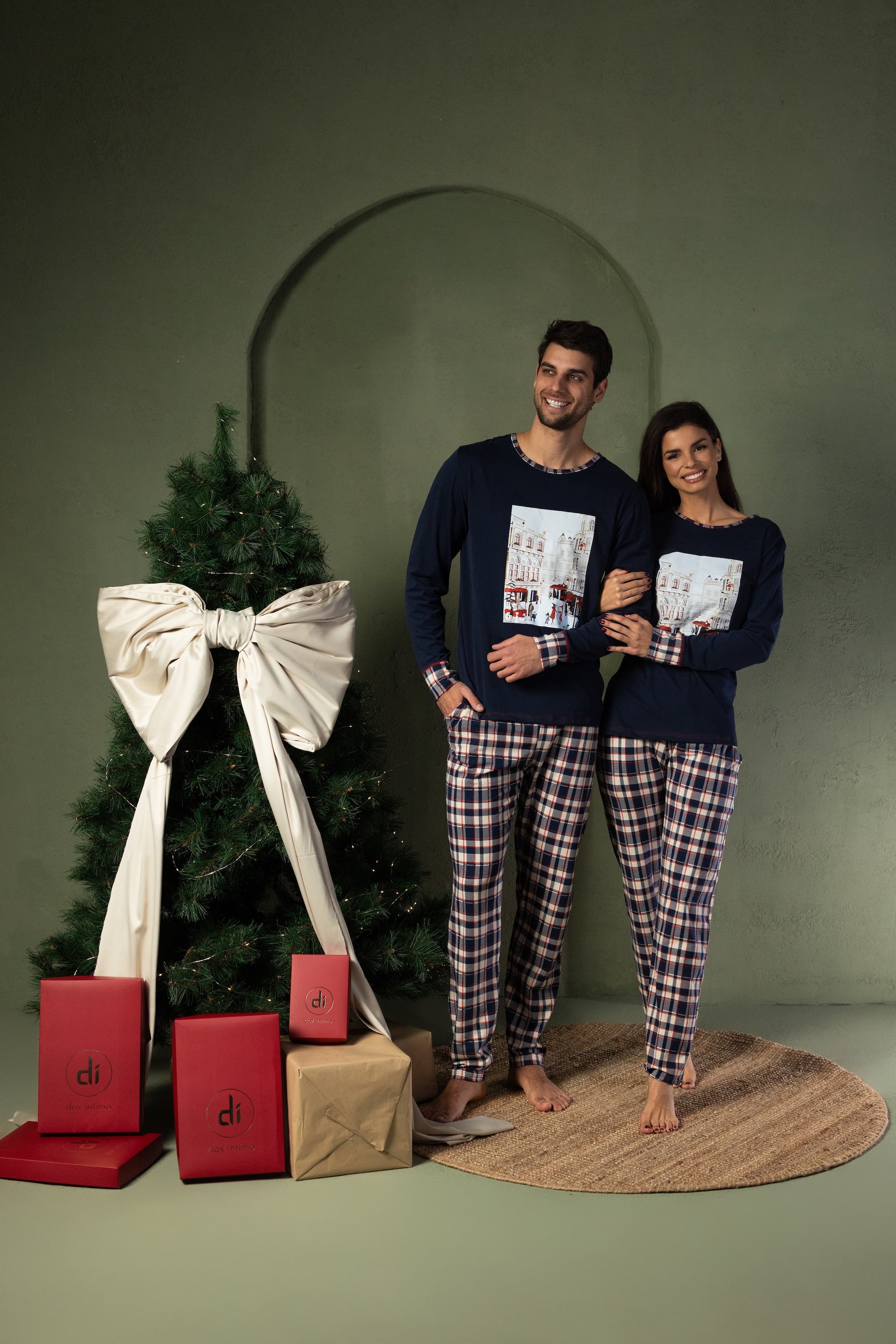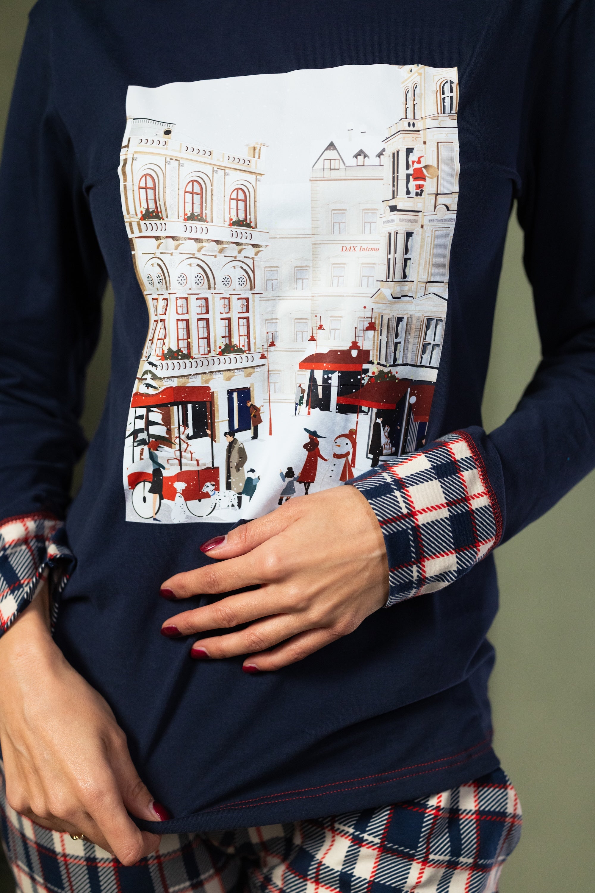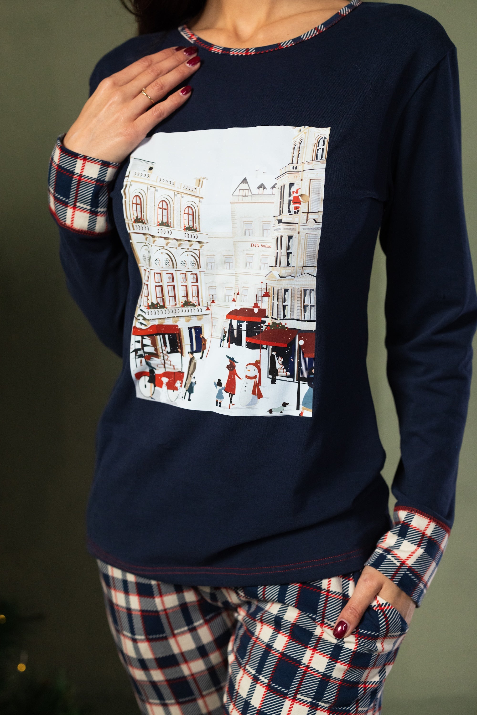 Donji dio od mekanog karo pamuka pruža klasičan, svečani izgled — idealan za praznične jutarnje trenutke.