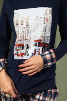 Okrugli izrez i manžetne u karo dezenu dodaju ženstvenu notu i savršeno se uklapaju sa donjim dijelom.