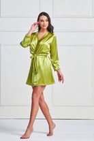 Luksuzan i udoban satenski kućni ogrtač u prekrasnoj kiwi zelenoj boji.