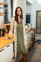 Ogrtač u etno dezenu, sa vezivanjem u struku za savršeno prilagođavanje