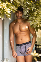 Muške bokserice prekrasnog uzorka od udobnog brušenog pamuka s finom gumicom u pojasu.