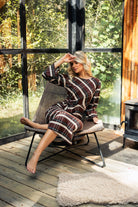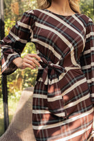 Dezen: Klasični karirani uzorak u toplim smeđim i bež tonovima, lako uklopiv sa jesenjim i zimskim garderoberom.