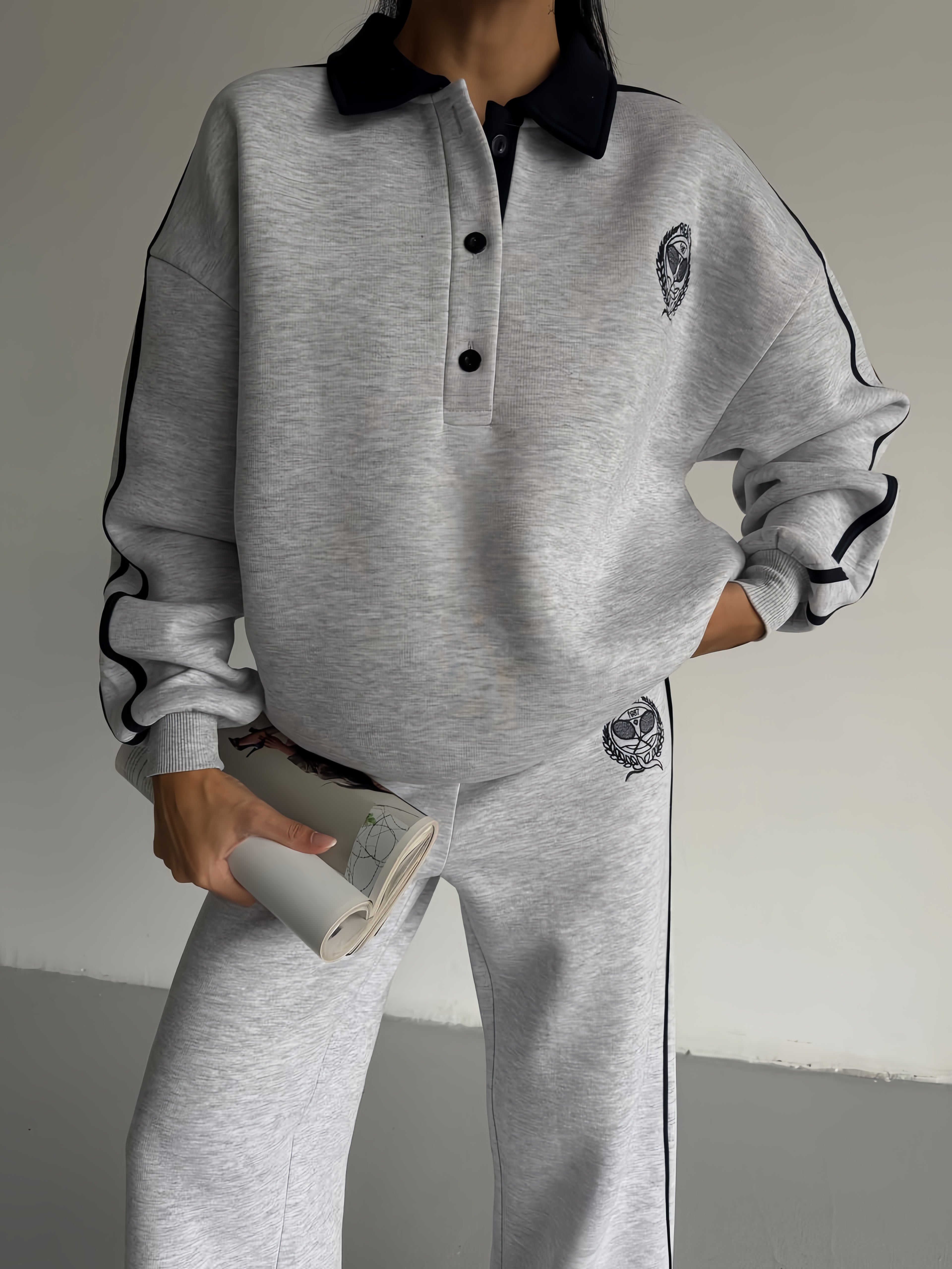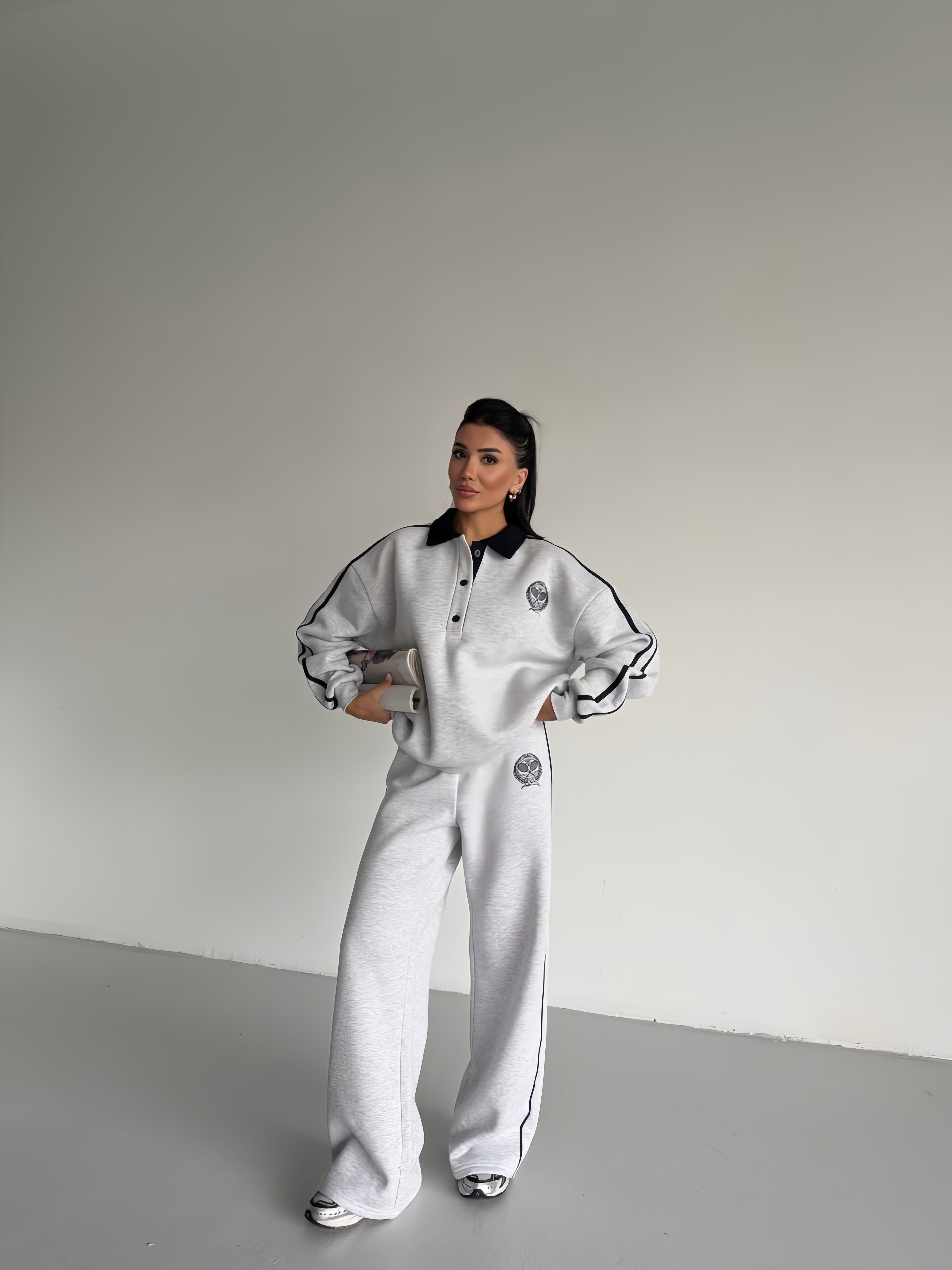 Kontrastna kragna i linije na rukavima i nogavicama daju modernu i elegantnu estetiku. - Široke nogavice za lako kretanje