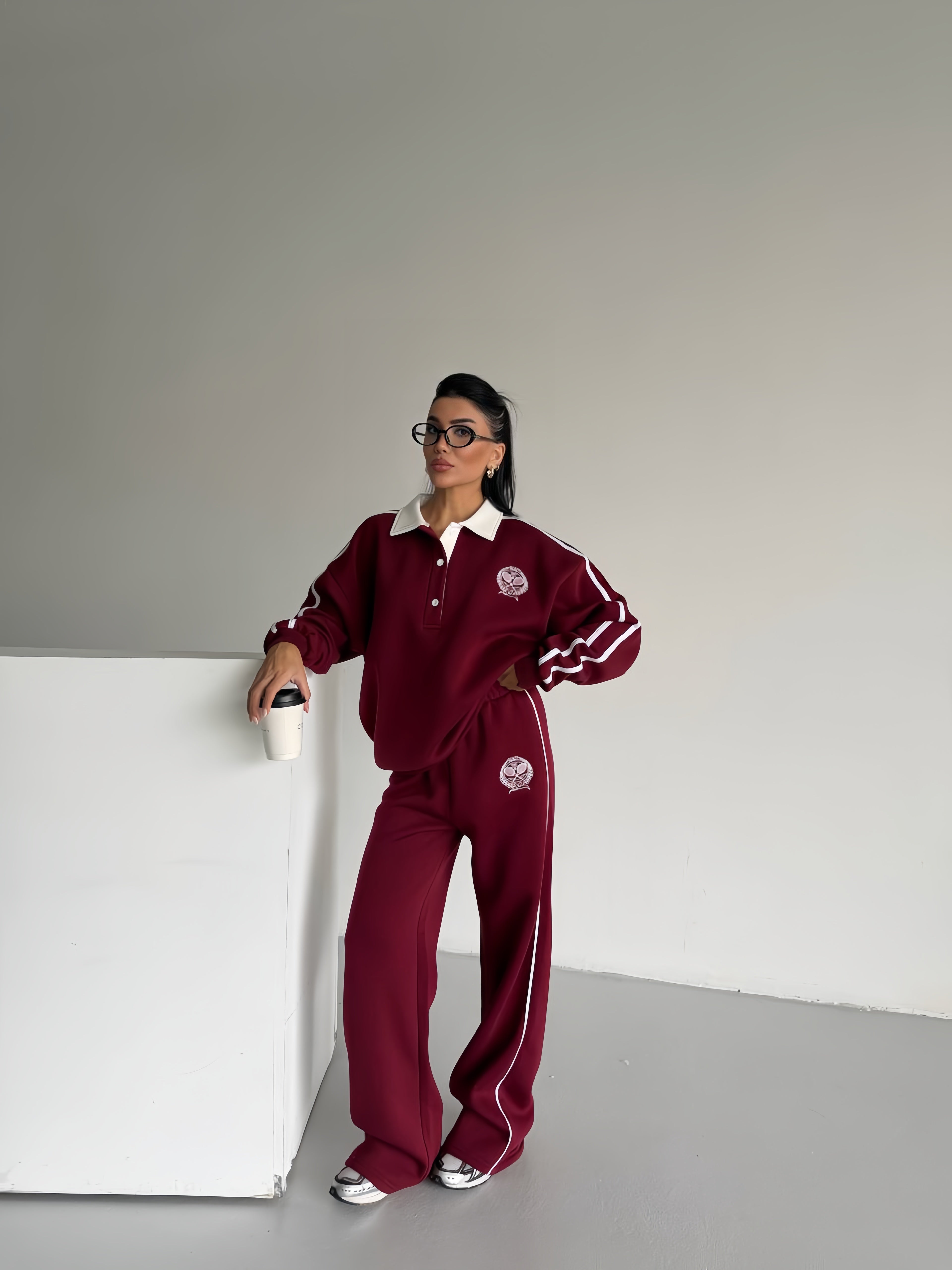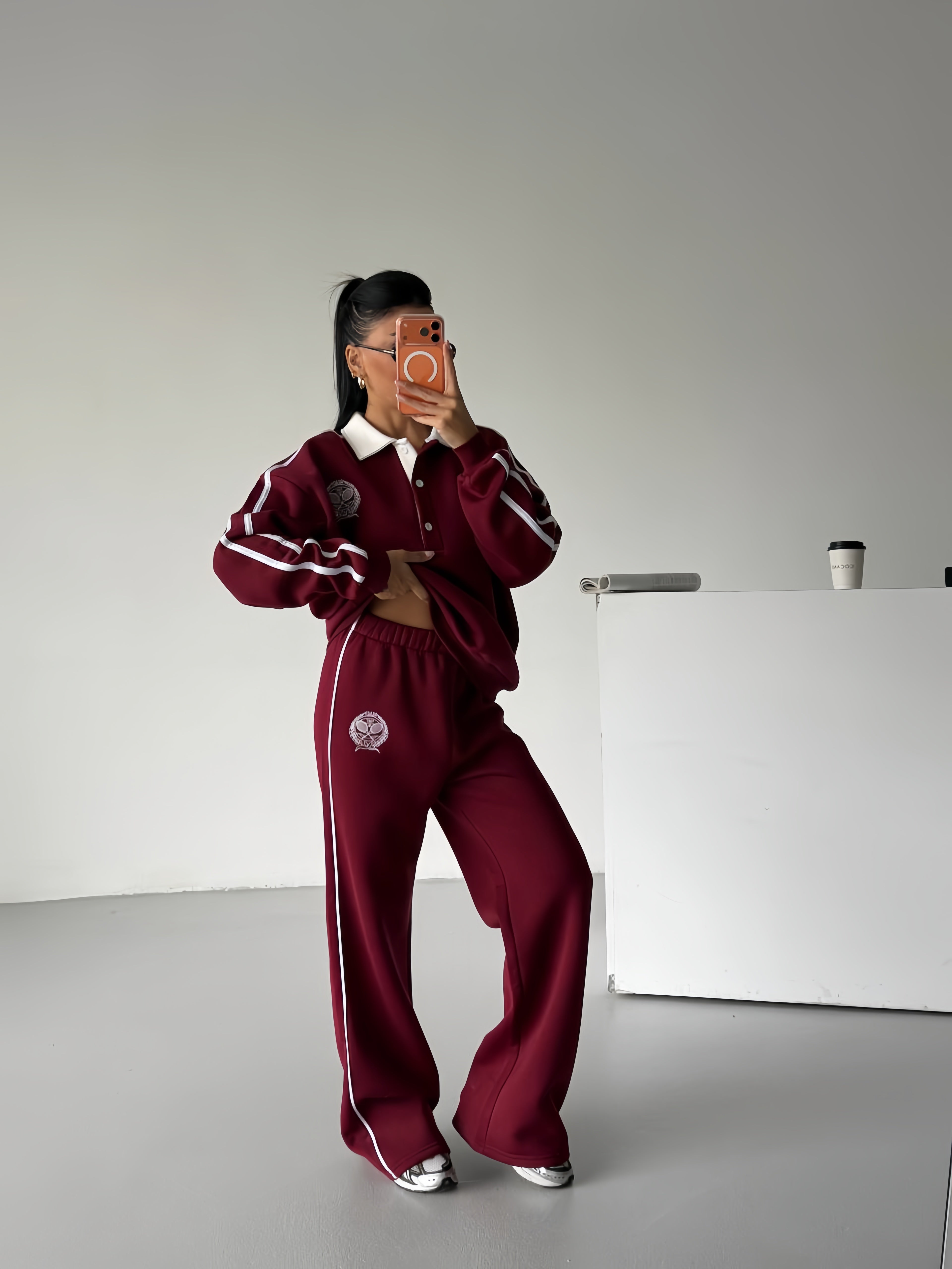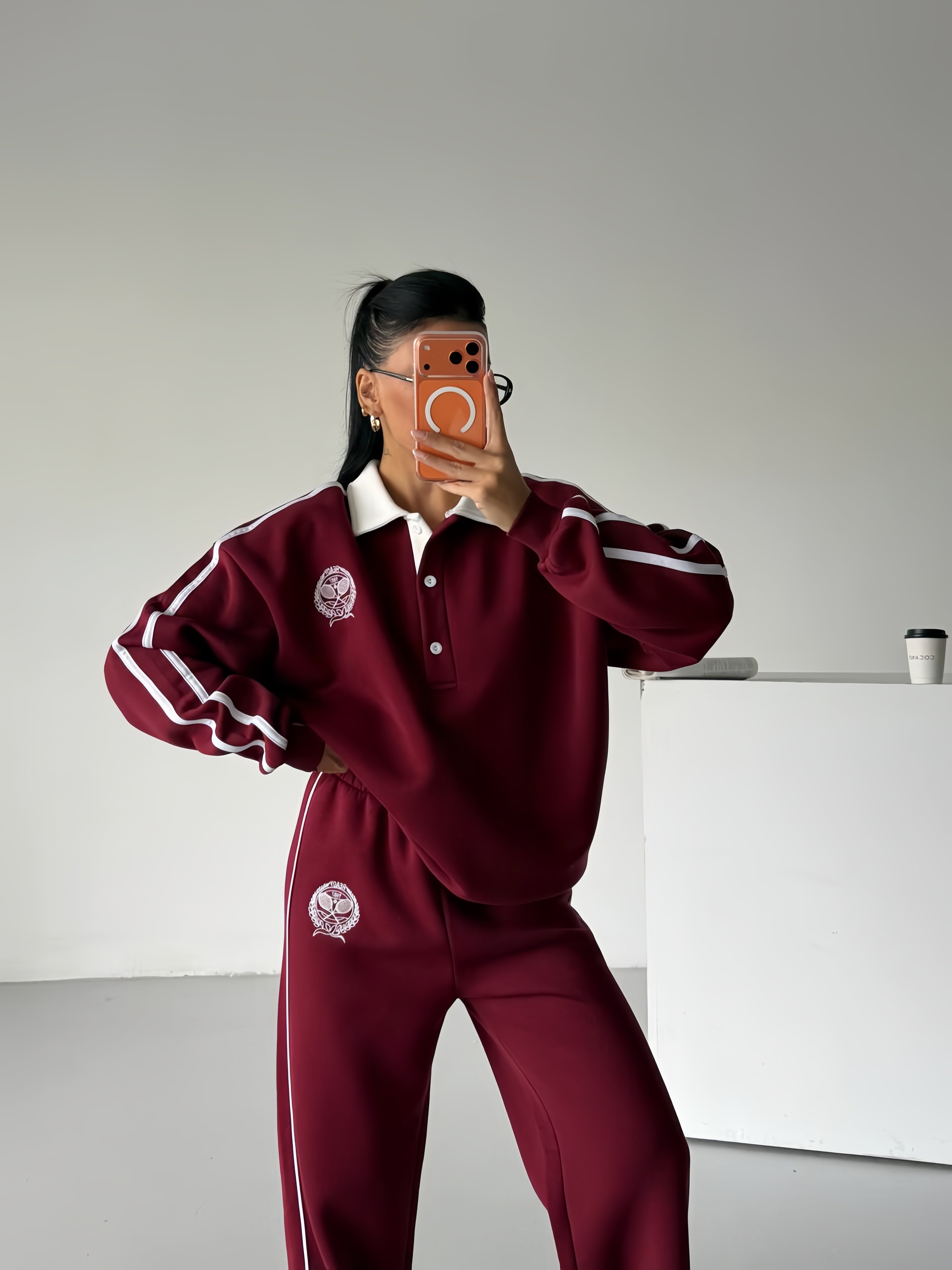 Emblem na grudima i pantalonama dodaje premium osećaj i prepoznatljiv identitet.