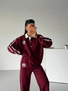 Kontrastna kragna i linije na rukavima i nogavicama daju modernu i elegantnu estetiku.