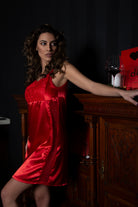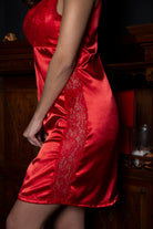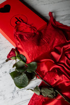 Poklon paket uključuje satensku spavaćicu s detaljima od čipke umotanu u raskošnu poklon kutiju crvene boje.