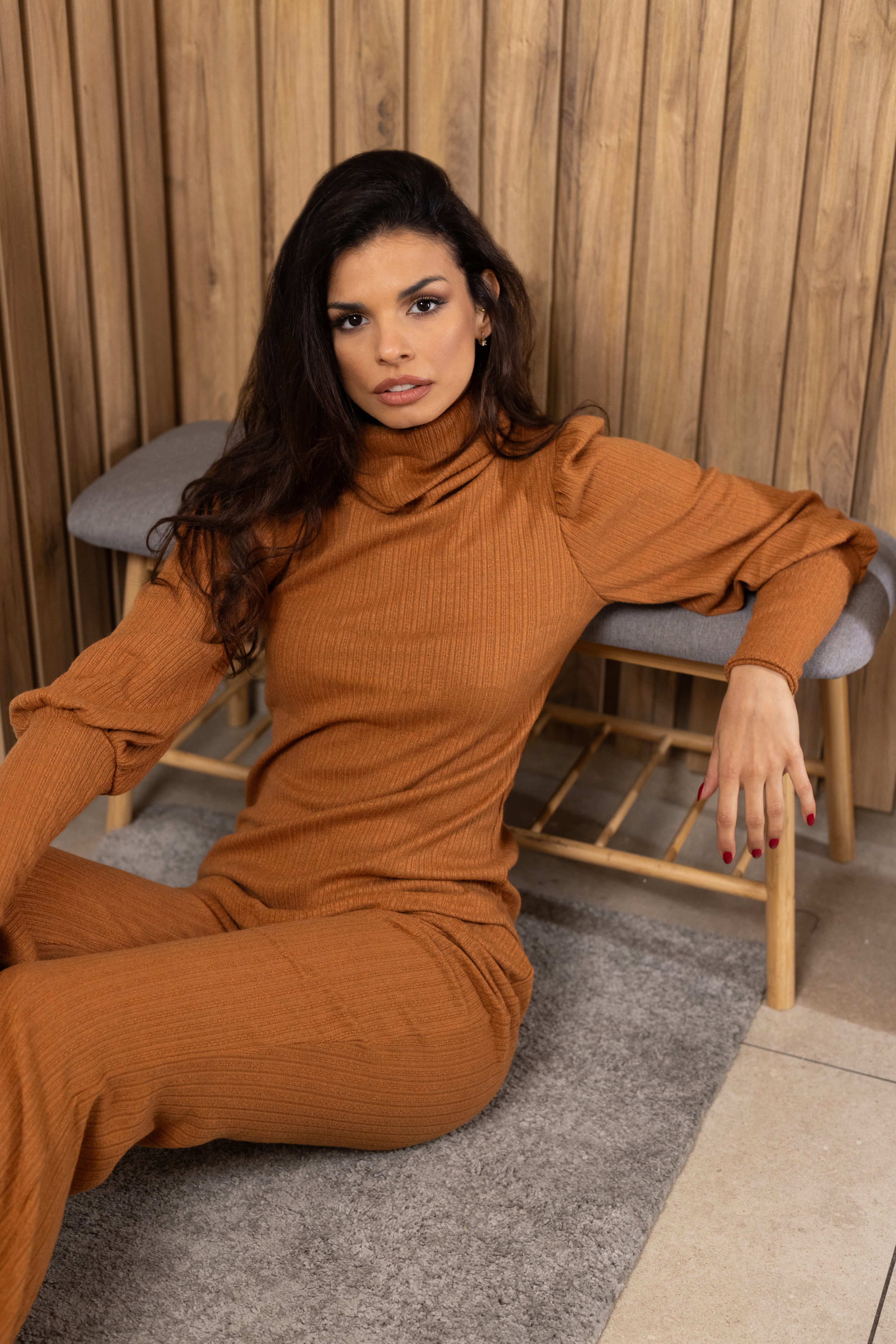 Detalji: rol ovratnik daje dodatnu toplinu, a savršen kroj naglašava figuru.