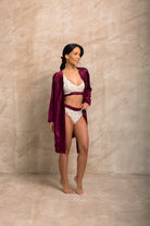 Boja: Duboka burgundy nijansa – simbol elegancije i senzualnosti, lako se kombinuje sa spavaćicama i donjim vešom.